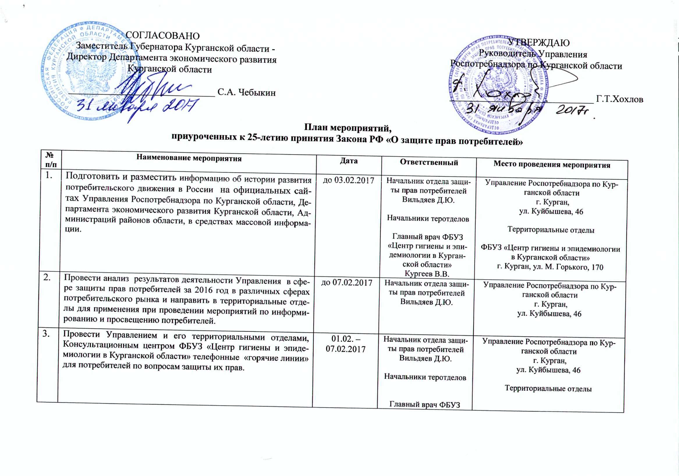 План мероприятий приуроченного к 25-летию принятия Закона РФ «О защите прав потребителей»
